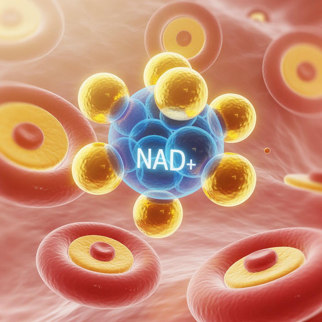 NAD+ (Nicotinamide Adenine Dinucleotide) is a coenzyme found in every living cell that plays a vital role in metabolism, energy production, and overall cellular health. It’s essential for converting nutrients into energy within the mitochondria and is deeply involved in DNA repair and longevity processes.